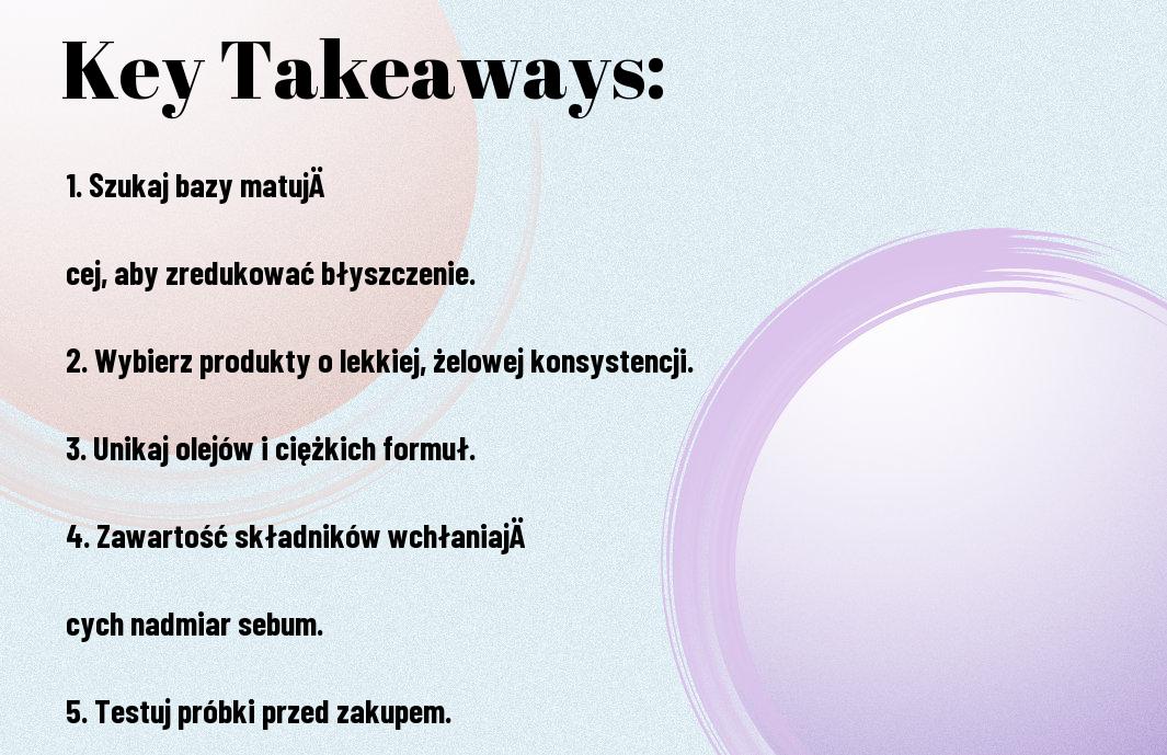 Aby osiągnąć idealny makijaż na cerze tłustej, kluczowe jest zastosowanie odpowiedniej bazy. Wybieraj produkty matujące, które pomogą kontrolować nadmiar sebum i zapewnią długotrwały efekt. Idealne będą silikony, które wygładzają skórę, a także składniki absorbujące tłuszcz, takie jak glinka czy puder ryżowy. Upewnij się, że wybierasz bazy bezolejowe, które nie zapychają porów. Dzięki temu Twój makijaż będzie prezentować się świeżo przez cały dzień, a Ty poczujesz się pewnie i komfortowo w swojej skórze.