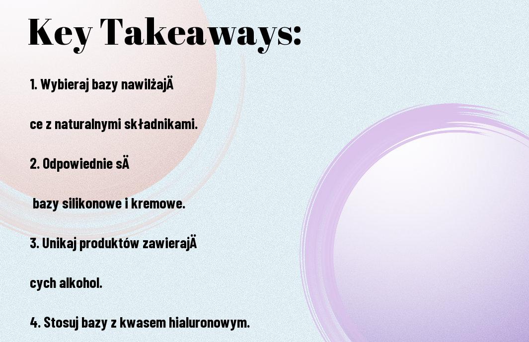 Jeśli masz cerę suchą, wybór odpowiedniej bazy pod makijaż jest kluczowy dla uzyskania gładkiego i promiennego wyglądu. W twoim przypadku ważne jest, aby sięgnąć po produkty, które nawilżają i odżywiają skórę, jednocześnie tworząc idealną podstawę dla kosmetyków kolorowych. Zwróć uwagę na bazy z kwasem hialuronowym lub olejami naturalnymi, które pomogą ci uniknąć efektu maski oraz podkreślenia suchych partii cery. W tym artykule dowiesz się, jakie składniki są najkorzystniejsze dla twojej skóry.